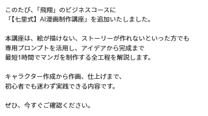 実際僕も【買い切りプラン】を購入していますので、飛翔自体は、内容的にも生成AIをしっかり使いこなせるようになるスクールだと思っています。